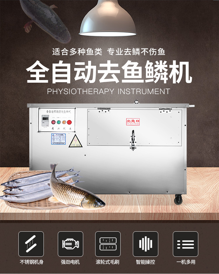 自動魚鱗機(jī)廣泛應(yīng)用于魚類銷售市場、飯店、魚類加工廠等等,本產(chǎn)品不會對魚頭、魚尾、魚鰭造成損傷。該機(jī)器利用旋轉(zhuǎn)效應(yīng),使魚在運(yùn)動中去鱗,去鱗干凈,對魚的加工去鱗屬國內(nèi)外首創(chuàng),主要指標(biāo)達(dá)到國際先進(jìn)水平。