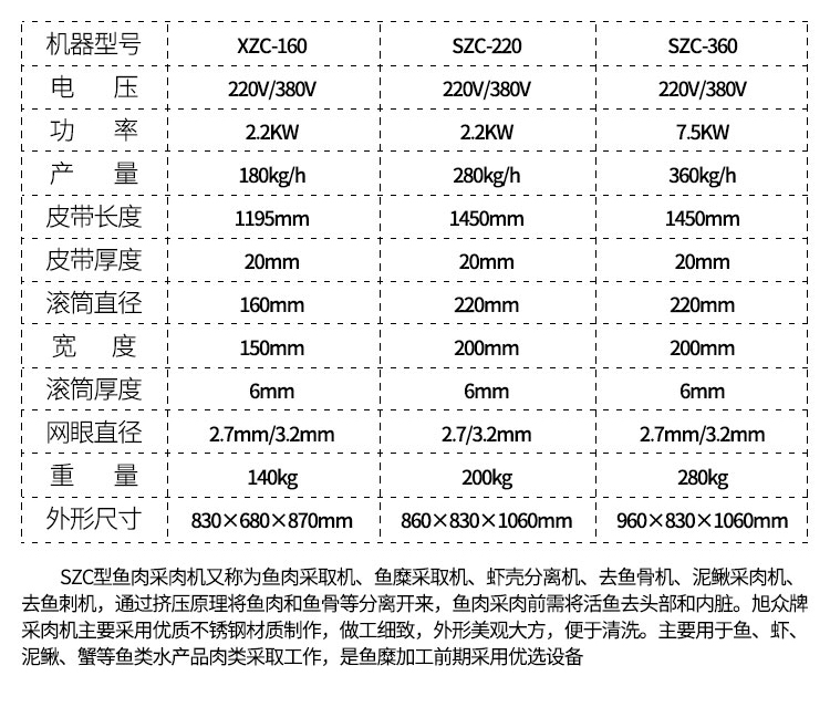 名稱魚肉采肉機 電源 功率 產(chǎn)量 尺寸 重量 規(guī)格 其他